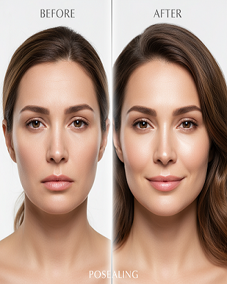 Before using Posealing, the skin may appear dull, puffy, and tense due to stress, fatigue, or poor circulation - often leading to uneven tone and visible fine lines. After consistent use, the transformation is clear: the face looks visibly firmer, smoother, and more radiant. Puffiness around the eyes and cheeks is reduced, skin texture becomes refined, and the natural glow returns with improved elasticity. The gentle vibration and heat therapy enhance blood flow and collagen activation, creating a refreshed, youthful appearance that feels as rejuvenated as it looks - all from the comfort of home.